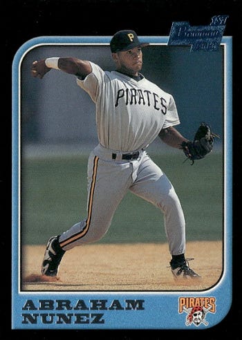 The first Abraham Nuñez signed with the Blue Jays as an amateur free agent out of the Dominican Republic in 1994, then landed with the Pirates as part of a nine-player trade in December of 1996.